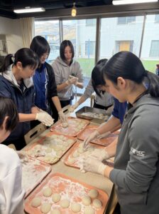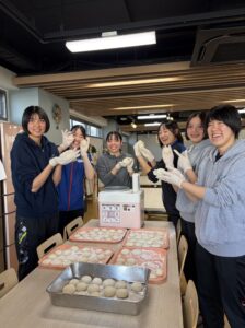 当日は、初めて餅丸めに挑戦する選手も多くいらっしゃいましたが、プロアスリートならではの器用さを活かし、次第にコツをつかみ、美しく仕上がったお餅がテーブルにたくさん並びました。